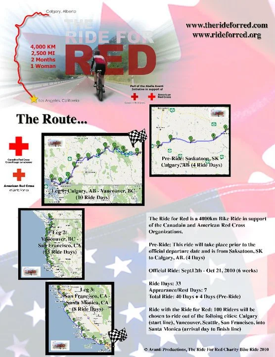 The Ride for Red was a landmark cross-border cycling and fundraising initiative supporting both the Canadian Red Cross and the American Red Cross. Founded by Shannon Smadella, the tour spanned 40 days, traveling from Calgary, Canada to Santa Monica, California, and crossing major terrain including the Rocky Mountains.